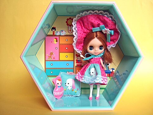 ■プチブライス ベイビーポニーズリトルロッジ 六角形のプチブラ収納ケース『リトルリッジ』にトウキョウトドラーの別バージョンを収めたベイビーポニーズリトルロッジ。ピンクとペパーミントグリーンの配色が綺麗です。『リトルリッジ』は背景が変えられて、…