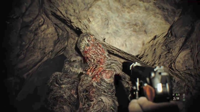 ゲーム内容としては、今作からFPS視点を導入したのらしく、この辺りは次作である『ヴィレッジ』で体験済みだったのもあり十分快適だった。それと、これまでのサバイバルスペシャリストが主人公だったシリーズ作と比べ、一般人が主人公といった点が大きく異なる。そのため快刀乱麻に敵をなぎ倒してゆく(あるいは俊敏にスニーキングする)のではなく、暗闇の中で得体の知れない化け物に追い回され逃げ惑う恐怖が一層高まっていた。つまり恐怖演出に特化しており、その点で斬新なシリーズ作となっていたのだ。ただ、購入当時はこれだけとんでもなく恐怖演出しまくっているとは予想しておらず、それでビビッて投げ出してしまったのである。